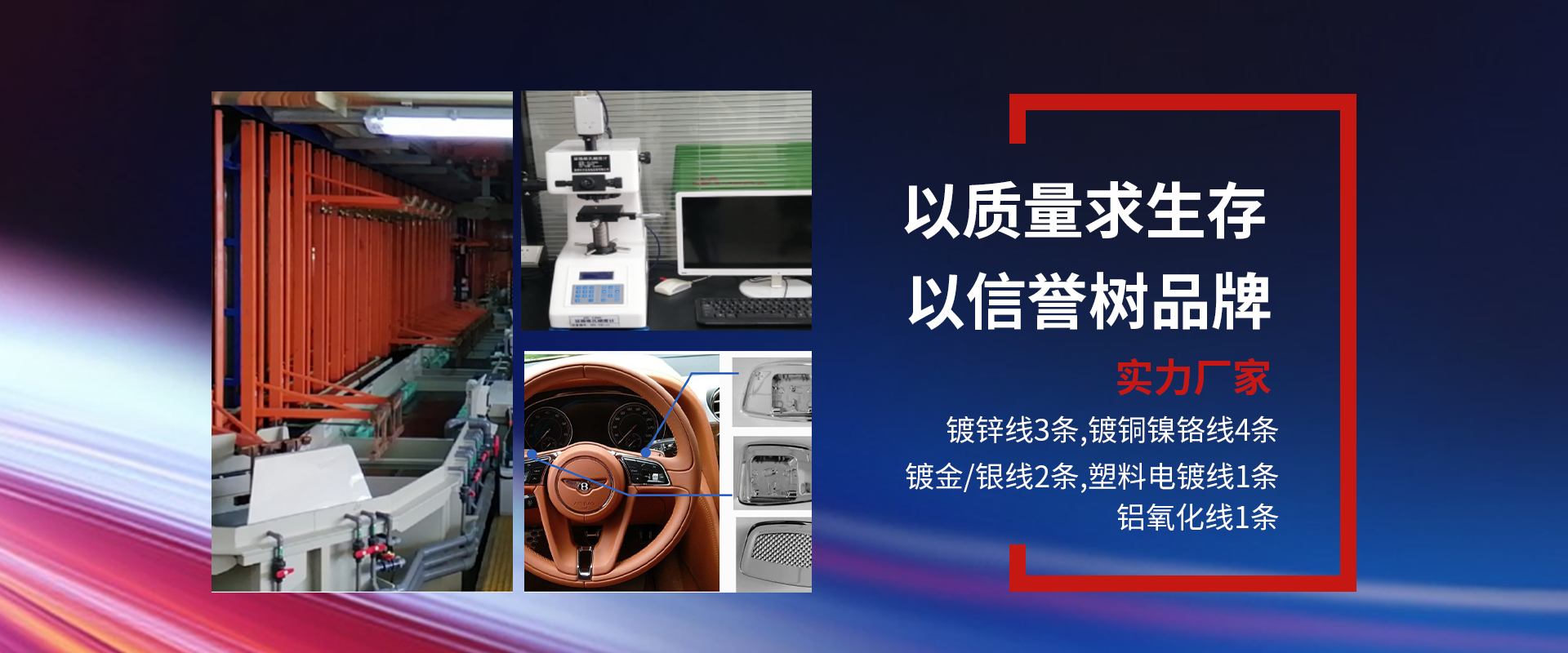 太倉(cāng)市華夏電鍍有限公司位于滬浮橫公路與339省道交匯處,交通十分便利,地理位置好。創(chuàng)辦于1979年10月,原為太倉(cāng)市壽安電鍍廠(chǎng),2002年改為太倉(cāng)市華夏電鍍有限公司,企業(yè)的性質(zhì)為股份制企業(yè),本公司占地面積約18000平方米,建筑面積10000平方米。固定資產(chǎn)9000萬(wàn),公司擁有12個(gè)車(chē)間和新的辦公大樓一幢,其中有鍍鋅線(xiàn)3條,鍍銅鎳鉻線(xiàn)4條,鍍金、銀線(xiàn)2條,塑料電鍍線(xiàn)1條,鋁氧化線(xiàn)1條。已經(jīng)建造完工新的污水處理設(shè)施一套,月污水處理能力達(dá)到15000噸,為了達(dá)到環(huán)保要求,電鍍車(chē)間所用的蒸汽全部與港區(qū)電廠(chǎng)蒸汽直接聯(lián)通,即環(huán)保,又方便。公司經(jīng)營(yíng)范圍廣泛。有鍍金、銀、錫、銅、鎳、鉻、鋅等終端客戶(hù)大眾,通用等。